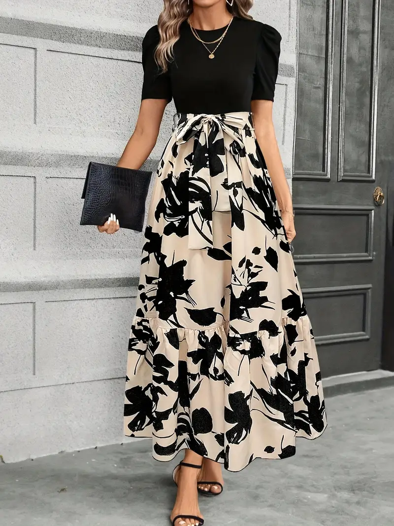 Floral Print Crew Neck Dress